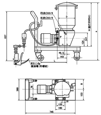 (1)润滑泵的外形尺寸 (2)带小车润滑装置外形尺寸 |
